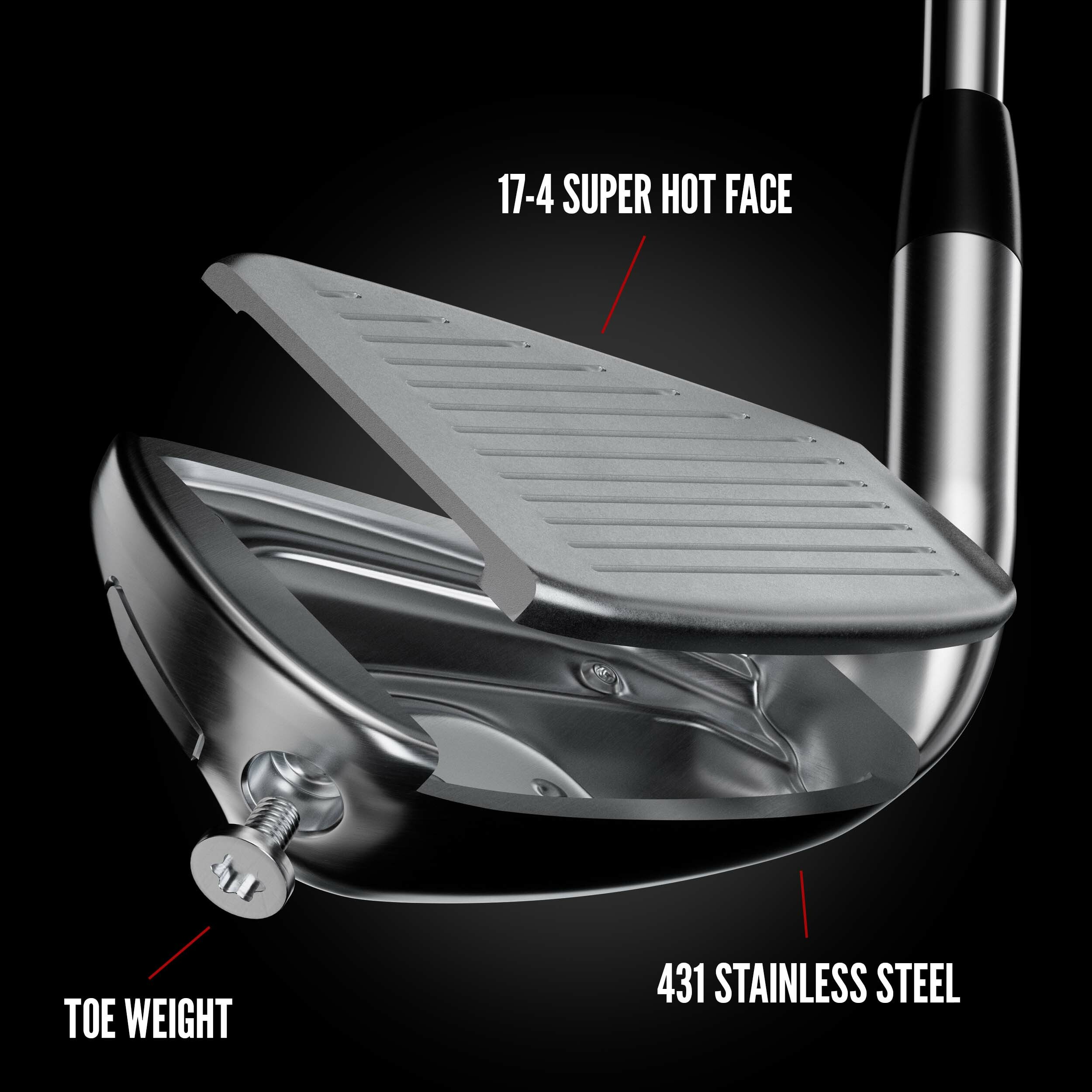 FXT uses a hollow-body design that merges a 431 stainless steel body with a heat-treated 17-4 super hot face. We've added a toe weight to improve ball speed retention.