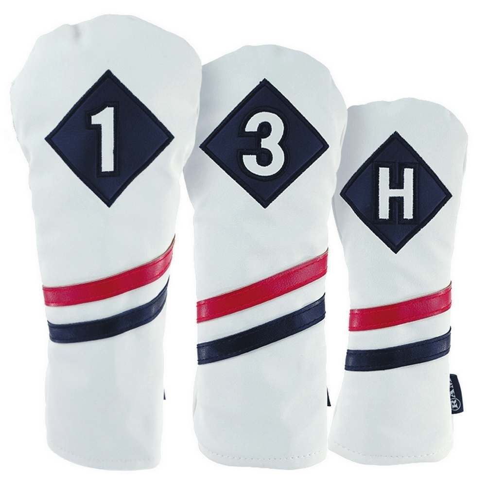 Ram Golf Vintage PU Leather Headcovers Set, White, Driver, Wood, Hybrid (1,3,X)